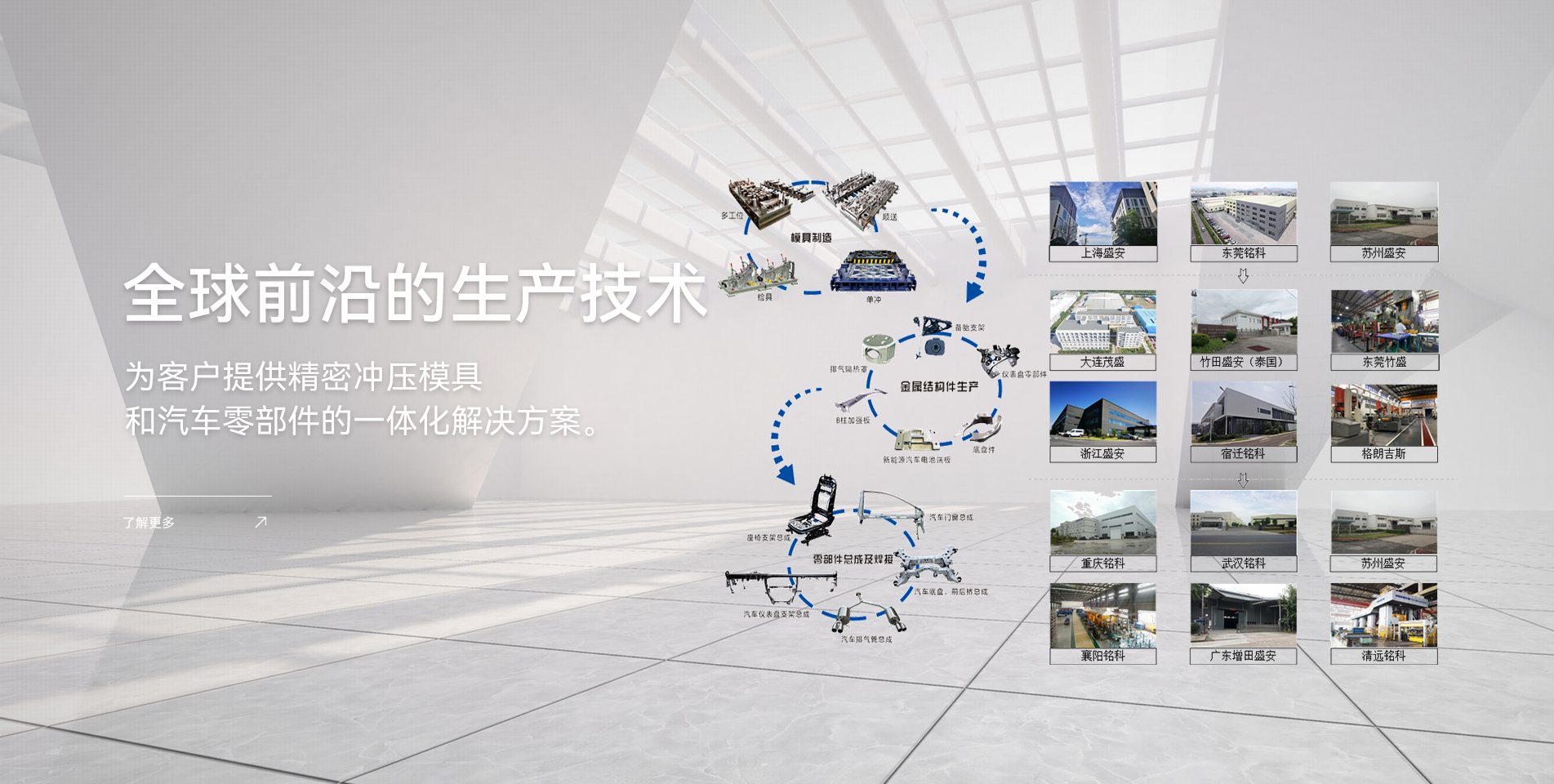 集團在國內擁有十多家制造基地,全面覆蓋國內六大汽車產業集群。集團在職員工近2000人,年產值在10億以上。自設立以來,集團公司堅持以客戶需求為導向,一直將自主研發和技術創新作為發展的持續動力。現已被認定為“國家高新技術企業”、“東莞市市級倍增企業”、“東莞市上市企業”,并被中國模具工業協會評為“中國汽車零部件沖壓模具重點骨干企業”、2017-2020年度模具出口重點企業等。
